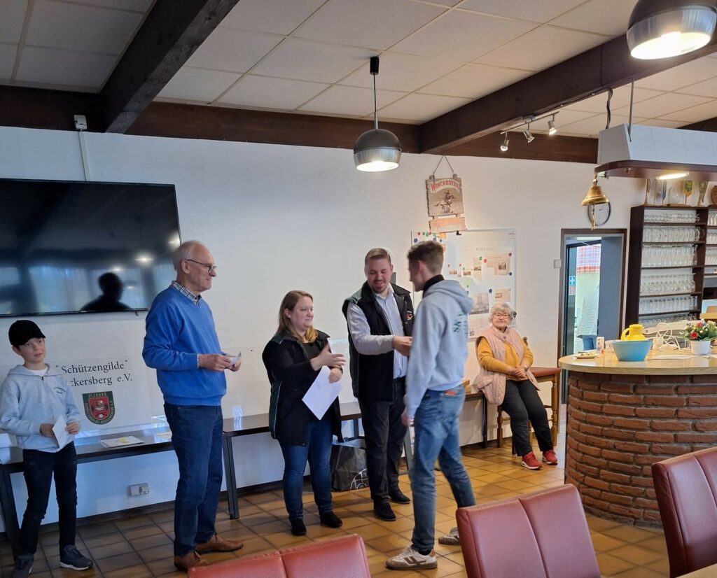 Die Siegerehrung ließ sich Herr Bernd Langbehn, der Neffe Werner Hesebeck´s und Lukas Kirchner, Kreisvorsitzender nicht nehmen und führte diese mit Unterstützung des stv. Jugendleiters im Kreisschützenverband Segeberg Beke Kirchner durch.